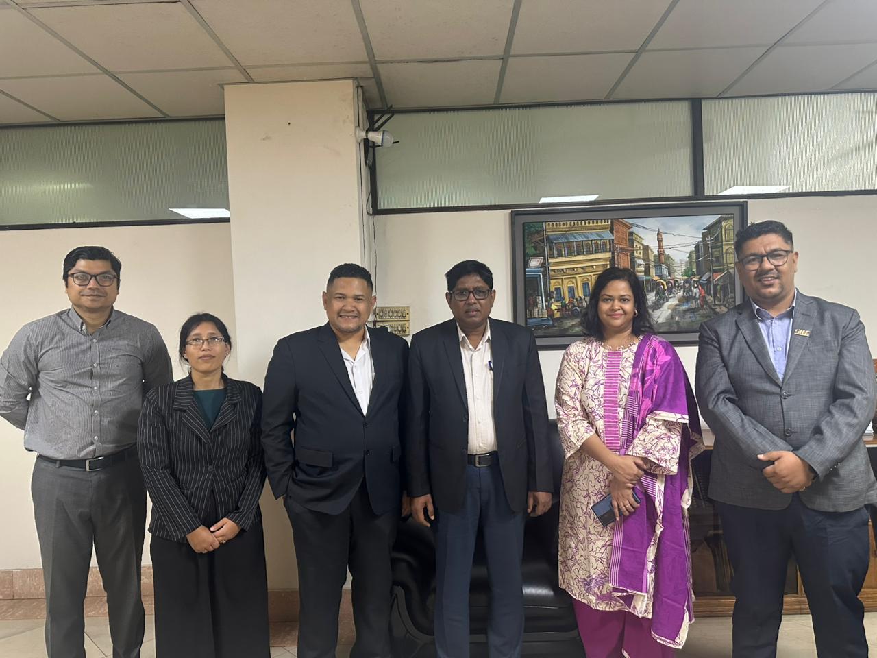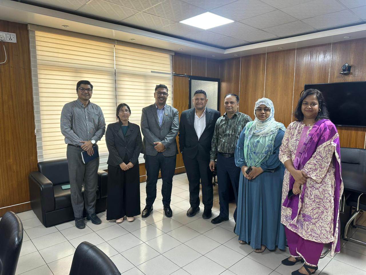 The team paid a courtesy visit to key DPHE officials, including Mr. Ehete Shamul Russel Khan (Additional Chief Engineer), Mr. Shishir Kumar Biswas (Executive Engineer, SIR Division), Mr. Shamim Ahmed (Project Director, 10 Town Project), and Ms. Dilruba Farzana (Deputy Project Director, 10 Town Project).