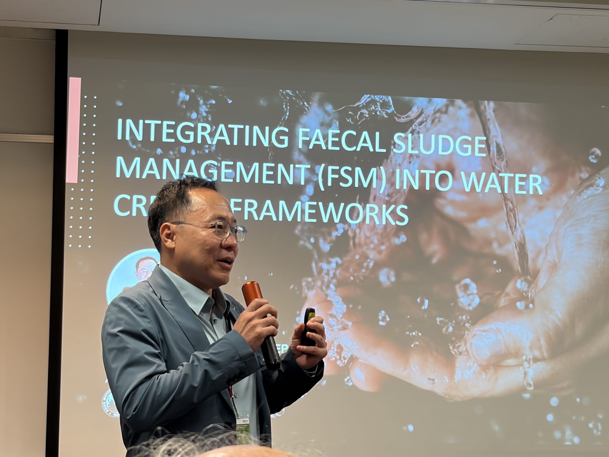 Prof. Thammarat brought this principle to life, presenting a transformative approach to integrating fecal sludge management into water credits frameworks. Drawing on decades of research and recent analysis, he demonstrated that safely managed sanitation in dense, underserved settlements can be quantified, verified, and financed, at five to forty times lower cost than conventional sewers.