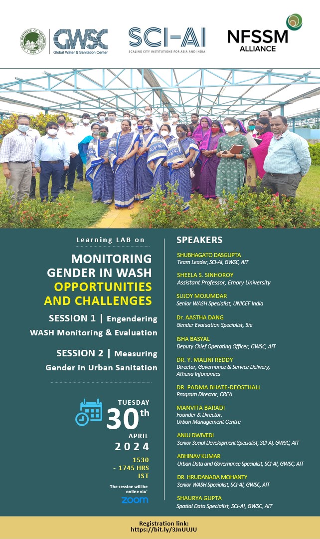 Scaling City Institutions for Asia and India (SCI-AI) at Global Water and Sanitation Centre (GWSC), Asian Institute of Technology organised a learning lab on 30th April 2024 on challenges and opportunities in monitoring gender in WASH.